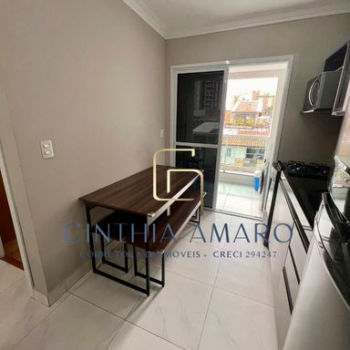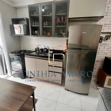 Apartamento com 2 dorms, 1 banheiro, cozinha com armários, sala, sacada e 1 vaga de garagem. 2 lances de escada. Área gourmet na parte superior do prédio.
