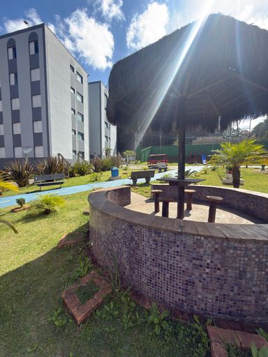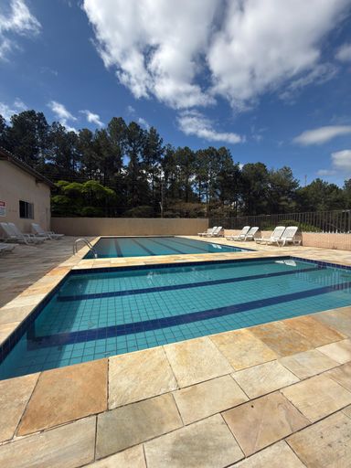 Condomínio completo com piscina, quadra, quiosque, área de lazer e portaria 24 horas.